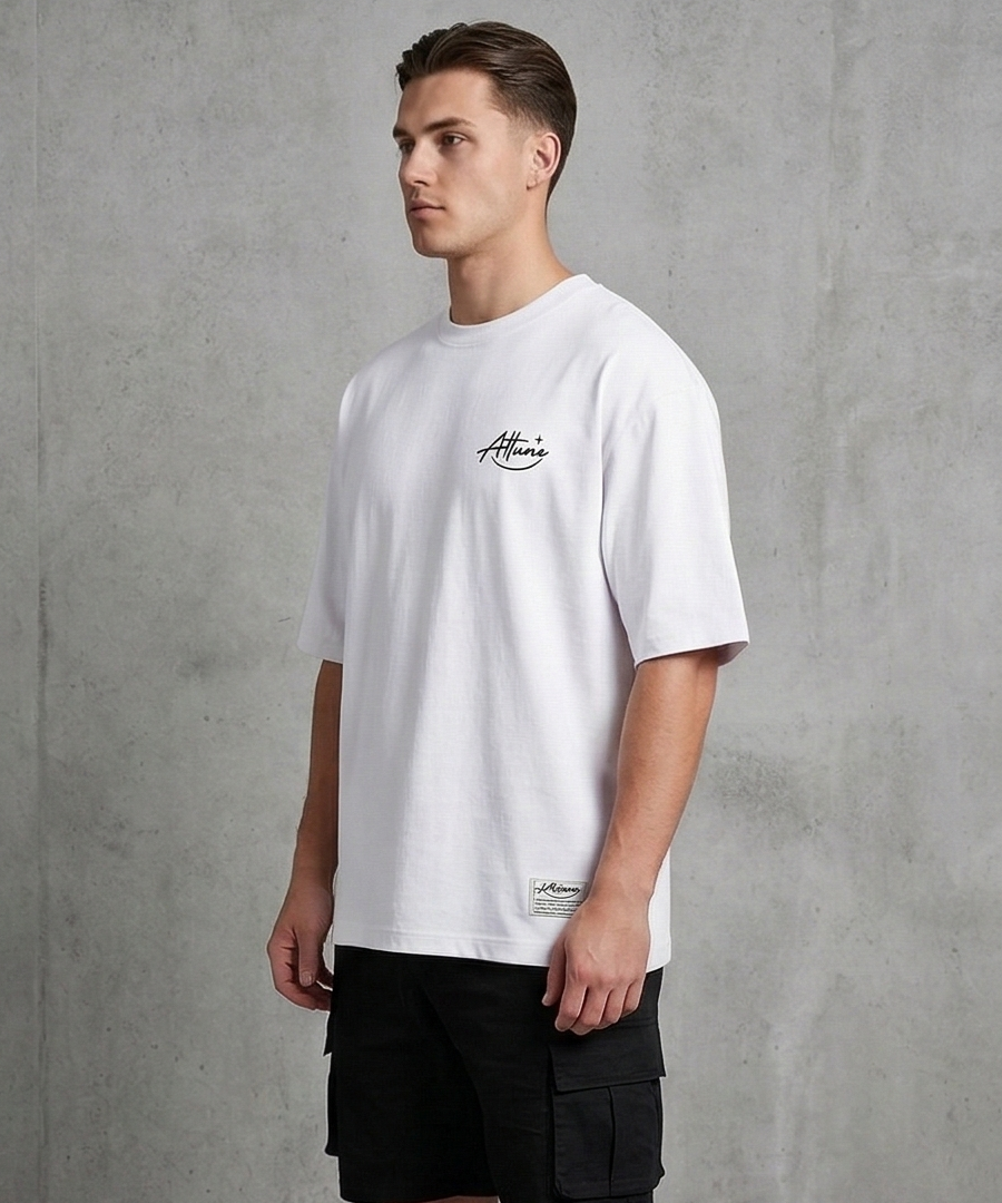 Designed for those who appreciate comfort without compromising on style, this oversized tee blends premium fabric with a modern streetwear silhouette. The heavyweight terry-knit construction delivers a rich texture and a structured drape, giving the tee a refined yet relaxed presence.